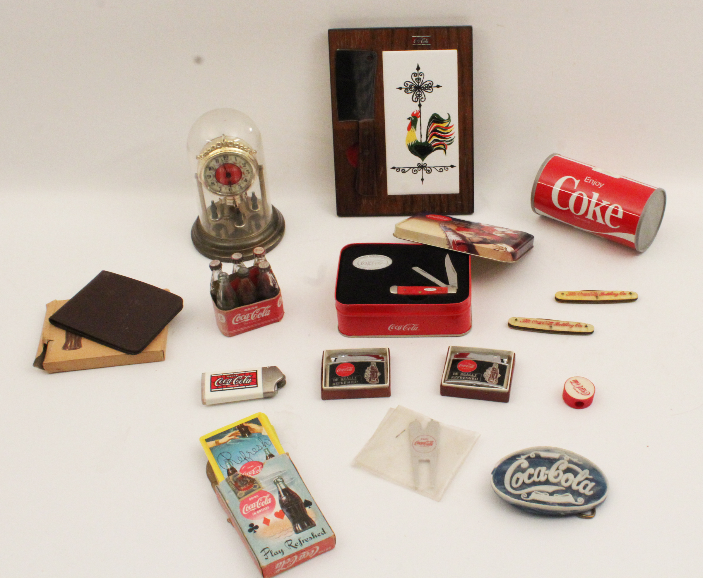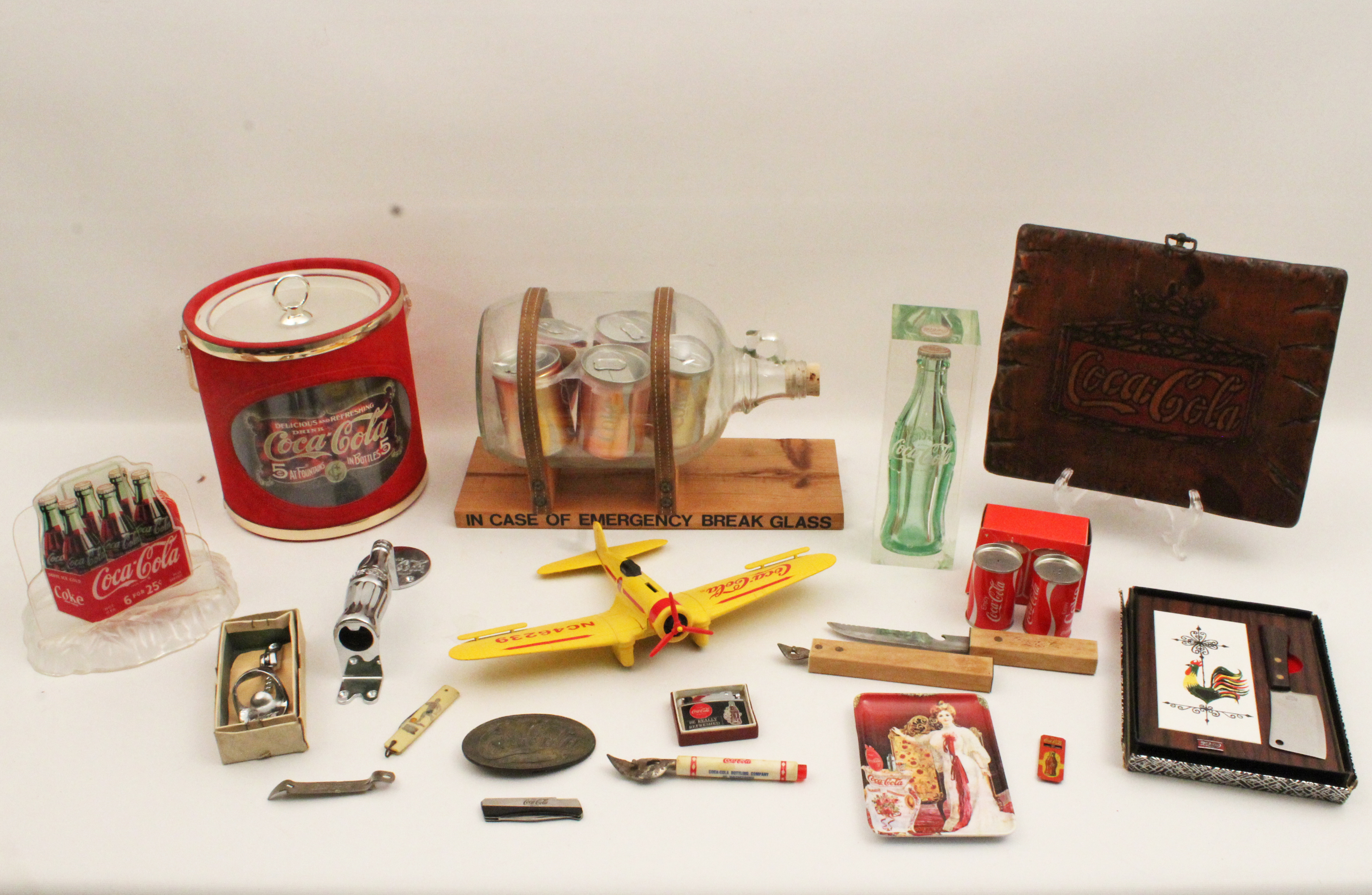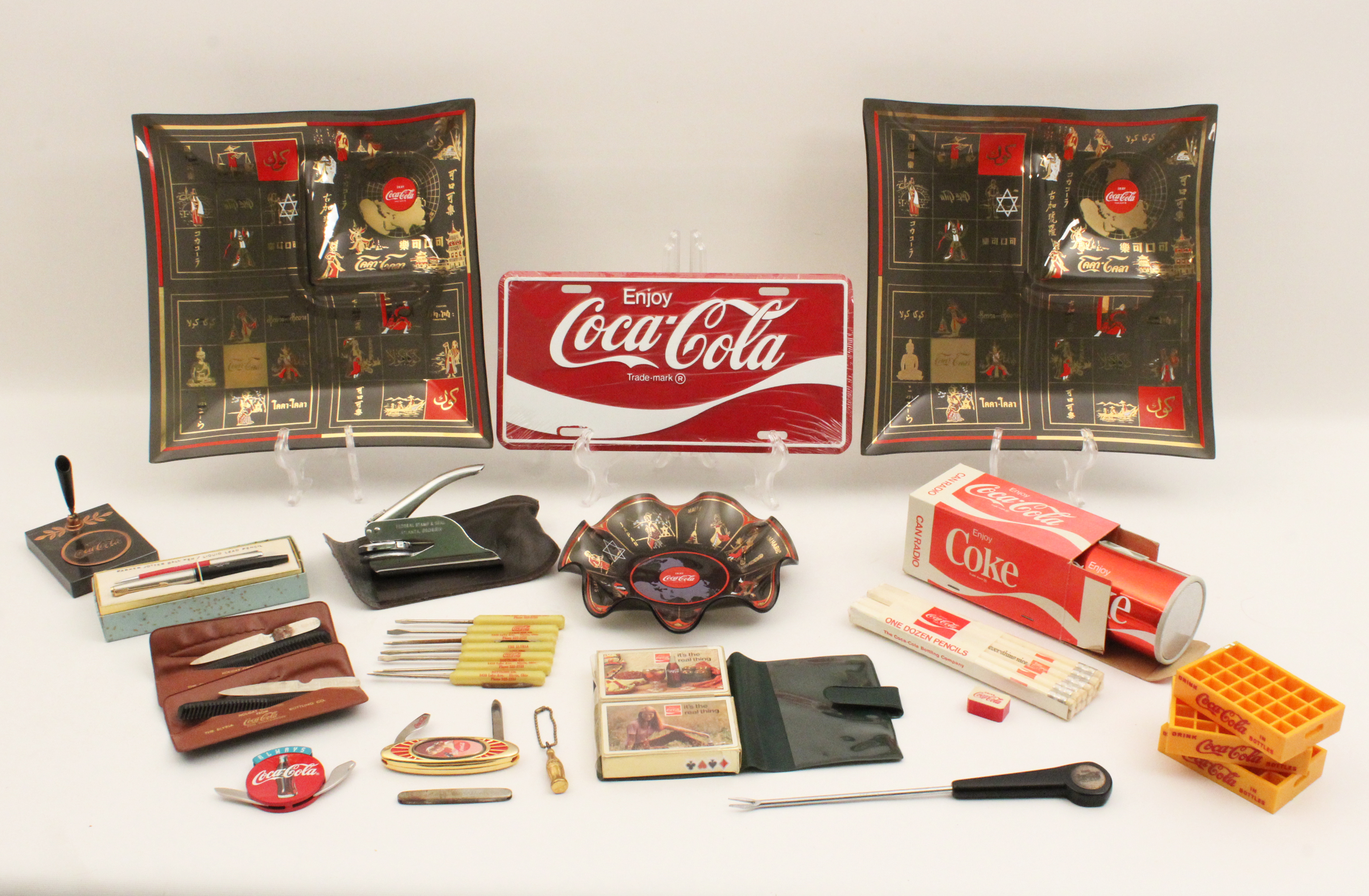Attention Coca-Cola collectors! Spectacular collection of memorabilia from the executive offices of Coca-Cola Bottling Elyria, OH. Trays, radios, coolers, promotional products, art work, christmas items, apparel, and so much more! Current owners purchased the collection some 20 years ago when buying the Signal Mountain, Tennessee home of Raymond Williamson. Collection was displayed within a game room of the home. Mr. Williamson was an executive pilot for Coca-Cola, and his father, Robert H. Williamson, was chairman of the board for Coca-Cola Bottling in Elyria, OH. Upon consolidation of the executive offices in the 1960s, contents of the offices were gifted to Williamson, who gave the contents to his son. Don't miss your opportunity to own a part of Coca-Cola history!
