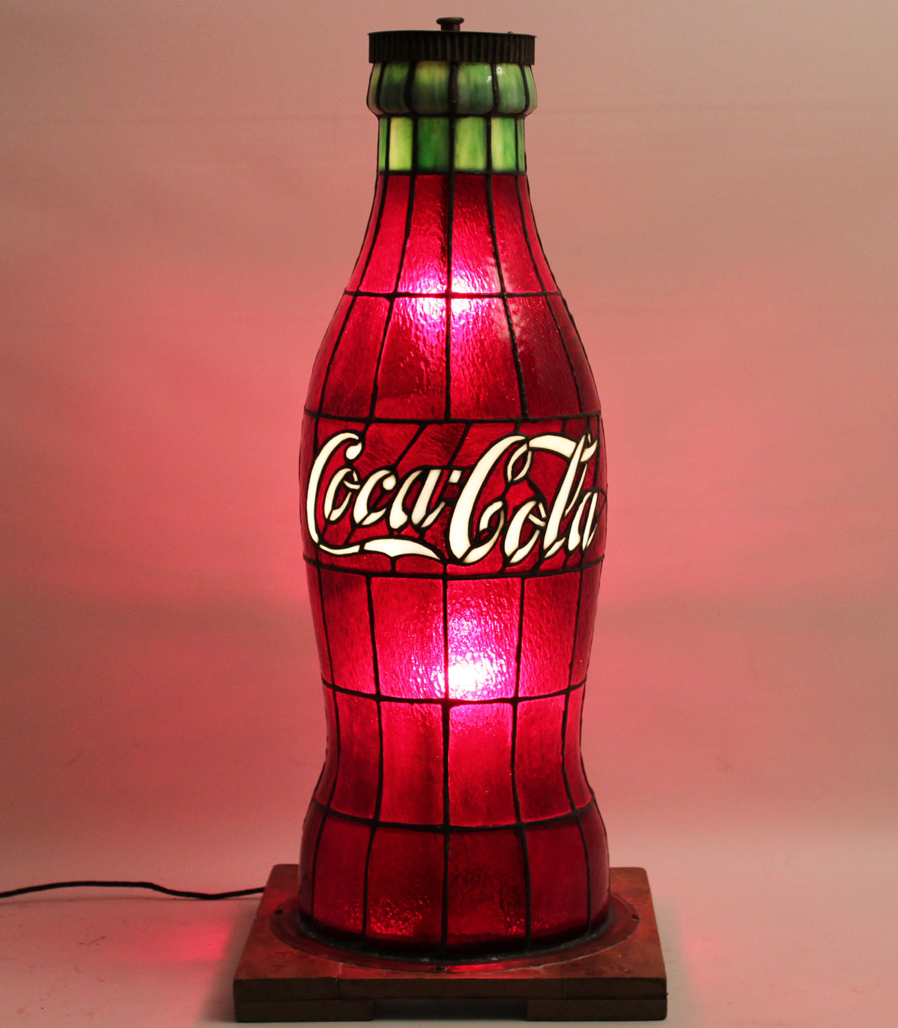 Rare Leaded Glass Coca Cola Promotional Lamp, Circa 1920